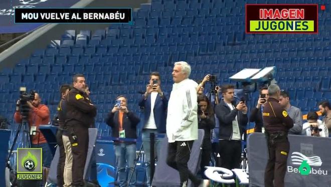 欧冠淘汰附加赛次回合,本菲卡客场挑战皇家马德里。赛前,据西班牙六台报道,穆里尼奥现身伯纳乌球场——这是他自2013年离开皇马后,时隔13年再次回到这座熟悉的球场。